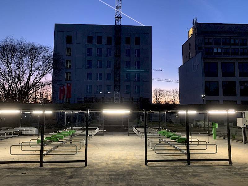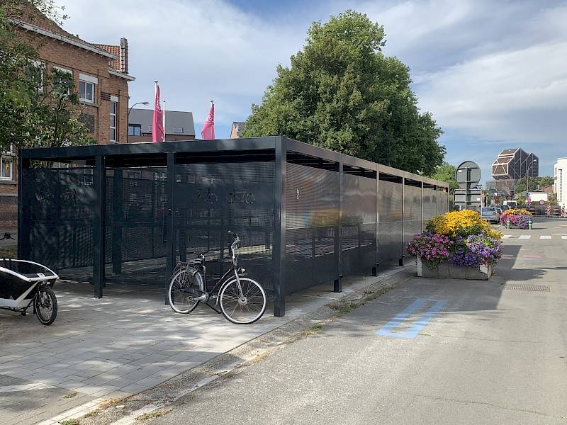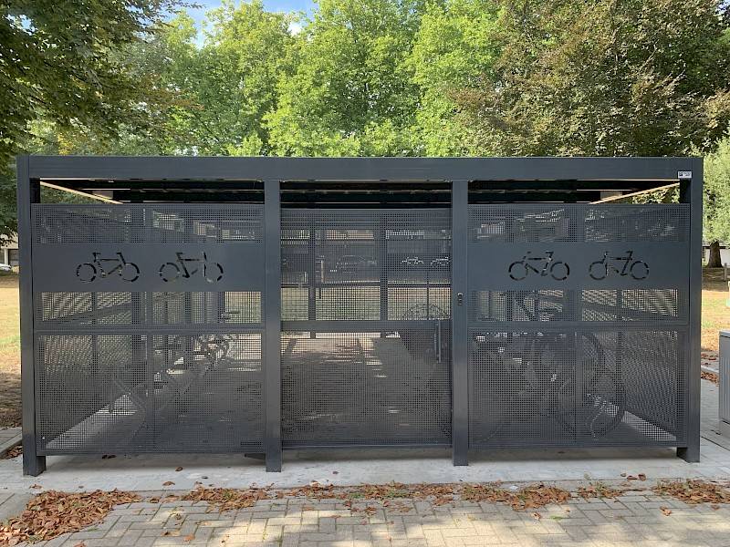 Abri à vélos intégré avec E-Bike Lockers pour recharger les vélos électriques en toute sécurité